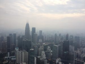Skyline view of Kuala Lumpur city centre from 300 metres above ground at Kuala Lumpur Tower’s skydeck.